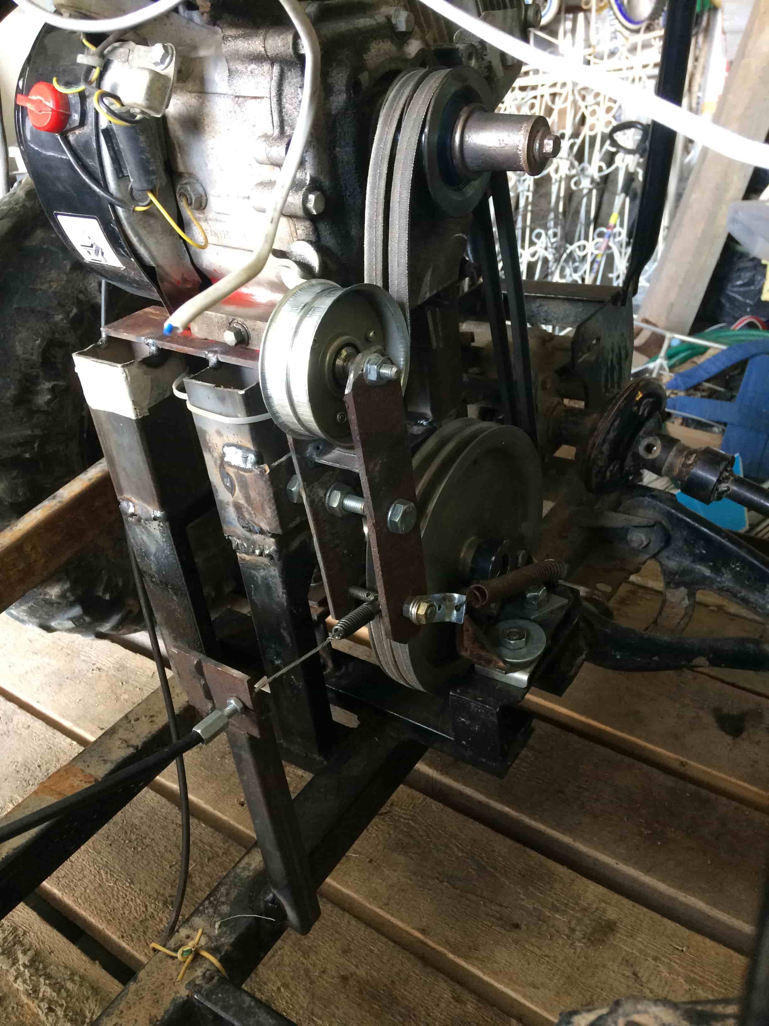 Еще три фотки - внешний вид + этап когда была переделка на шкиво-ременную передачу