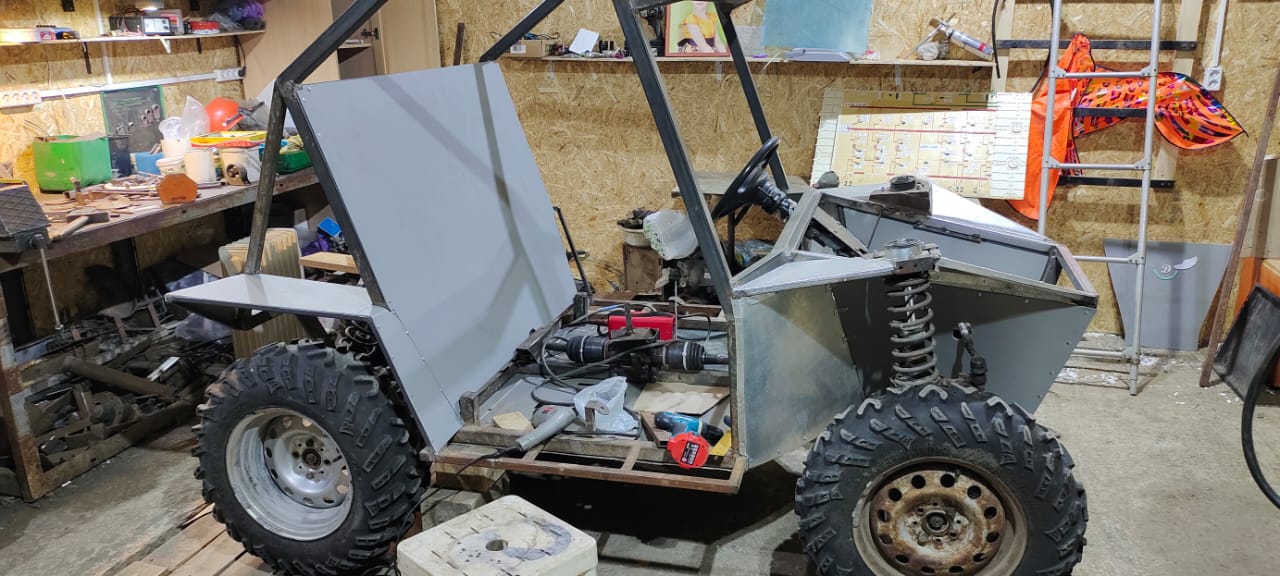 Строельство по немного продолжается. Друг прикупил 2 листа АБС пластика, завтра заберу и продолжу обшивать. Переделал полность выпуск и впуск на двс, чтобы над ним расположить багажник.